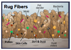 The average person sheds millions of skin cells every hour and along with the food particles, pollen, and pet dander become food for germs. As a result, your area rug probably contains hundreds of thousands of bacteria per square inch. Some of the bacteria munching on the banquet hiding in your Persian rug include E coli, salmonella, and staphylococcus. Thousands of dust mites can also live in your tightly woven rug. These dust mites act as allergens along with pollen, dander dust and mold spores on spills. When you walk or your children roll around on your rug, these pollutants are disrupted and some will rise to the surface. These allergens can cause your family to sniffle and sneeze.